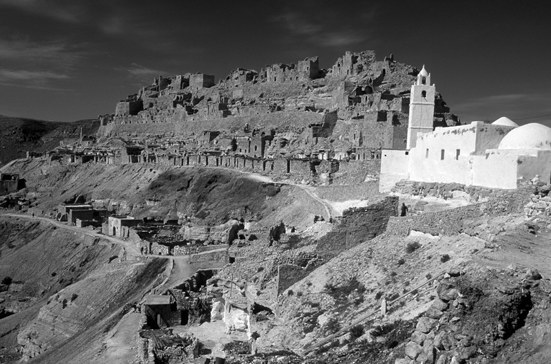 j'aime l'opposition du blanc de la mosquée avec le gris du relief.