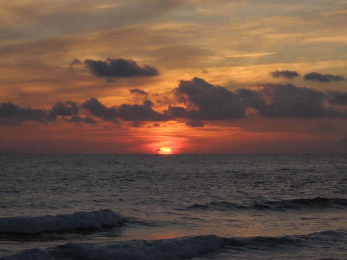 pas mal pour un premier, en tout cas la lumière est bien dosée. j'aime beaucoup les gris qui se répondent entre la mer et les nuages. par contre je te conseille de ne pas centrer le soleil. sinon on entre dans la photo et on en ressort aussitôt, c'est dommage et moins riche.