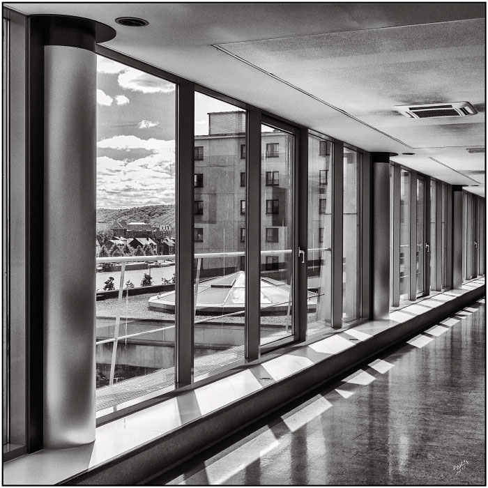 Très belle photo, le titre est bien trouvé à mon sens, souligné par la contradiction d'avec le "le bout de ville et ciel par dessus" que l'on aperçoit au loin dans un des encadrements. Vraiment super.