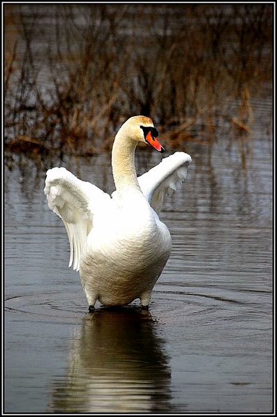 bel oiseau ! j'aurais modifié un peu le cadrage : soit en lui donnant un peu plus d'espace sur la droite, soit en conservant sur le bas son reflet, du coup en le centrant.