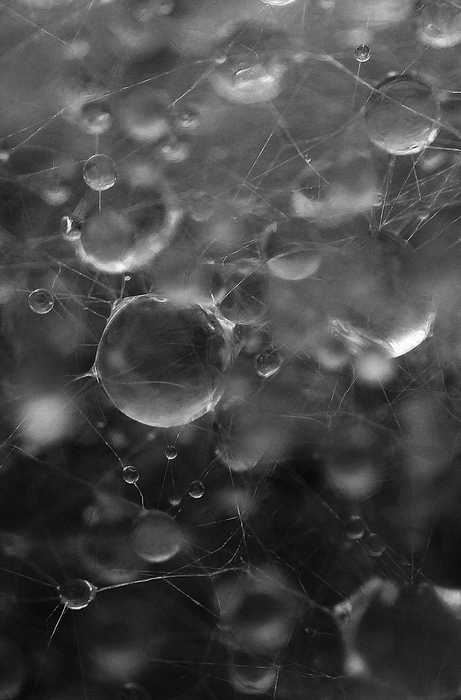l'dée est intéressante, mais il y a des choses qui me dérangent: zone nette insufisante, NB grisouille, beaucoup de bruit (surement un gros crop, car ton boitier ne bruite pas à 200Iso), la grosse goutte qui est le sujet principal (puisque la seule à peu près nette) est trop sur l'axe médian