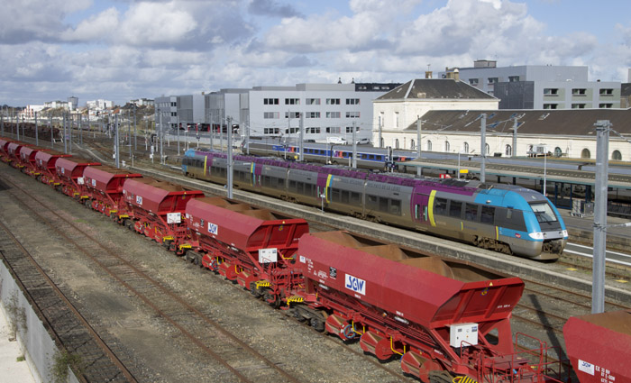 Pdv ferroviaire classique mais je ne peux pas résister.Au premier un train de wagons de type "ballastière" puis je crois bien reconnaître une rame automotrice construite par Bombardier, l’AGC Bibi qui est un matériel particulièrement innovant et polyvalent qui peut circuler en mode diesel et électrique : 1 500V et 25 000V. Puis ,en arrière plan une rame tgv réseau en nouvelle livrée.