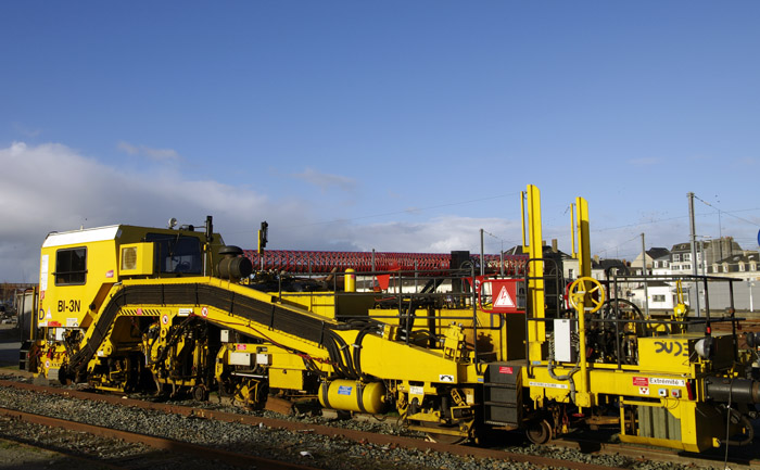 Une machine imposante dans son environnement dont la couleur s'accorde bien avec celle de la passerelle. Les connaisseurs du milieu ferroviaire (je crois qu'il y en a) pourront sans doute nous en dire plus.