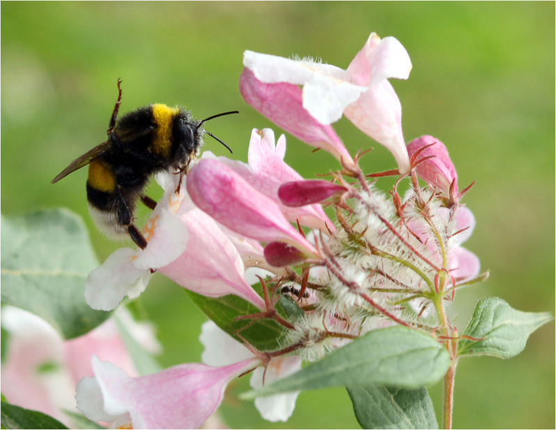 mais une lumière un peu dure sur la fleur et l'insecte un peu sombre