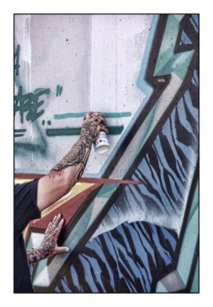 jolie compo avec parallélisme bras et dessin, couleurs OK également,