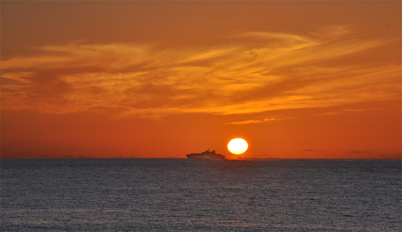 Un léger traitement en deux fois : un pour la mer qui était trop sombre et un pour le bateau pour atténuer le côté bouché. Pour le ciel c'est brut. C'est un ciel que l'on peut voir tous les jour dans le nord-est de Ténérife à San Juan de la Rambla