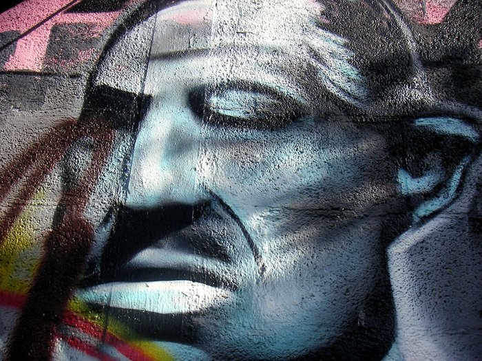 j'aime bien cette lumière "ombrée" qui vient éclairer cette oeuvre murale... le cadrage imposant est bien vu et le titre bien choisi