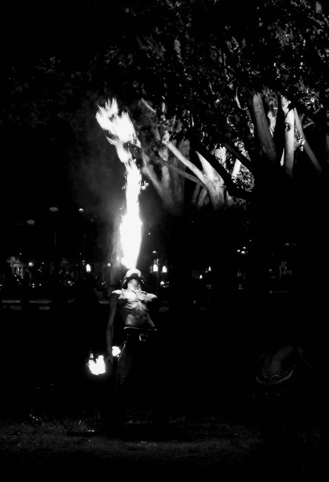 J'aurais préféré la flamme plus à l'horizontale et gommé les principales lumières dans le fond.