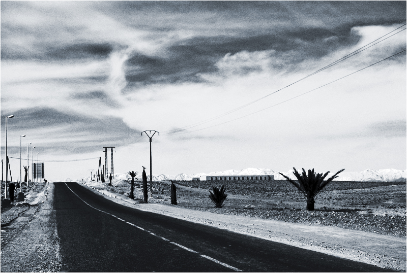 j'ai bien la composition "classique", le grain et la dominante bleue qui donne une ambiance post-apocalyptique j'aurais aimé moins de zone claire dans le ciel (un blanc moins fort) pour que les montagnes soient plus présentes au loin (opposition désert/montagne).