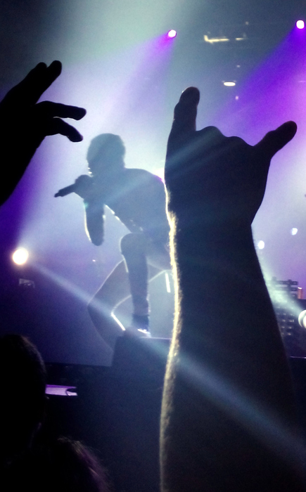 je préfère la version en couleurs j'aurais aimé que les 2 mains soient un peu moins présentes car tout le reste me va: contre-jour, lumière des spots, attitude du chanteur