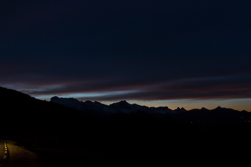 Cette PdV est intéressante de par le chemin partiellement éclairé, à gauche. Sinon, je dirais plutôt « heure bleue foncée »...