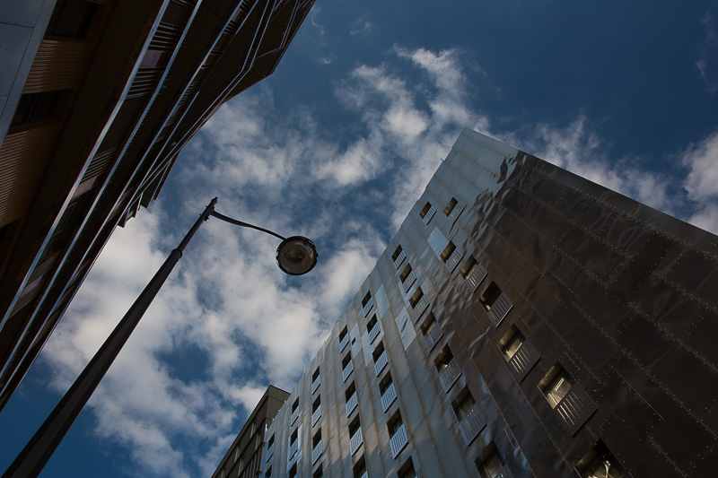 J'adore ça. Angle grand, cadrage, lampe-à d’ère ! Pyramide urbaine...