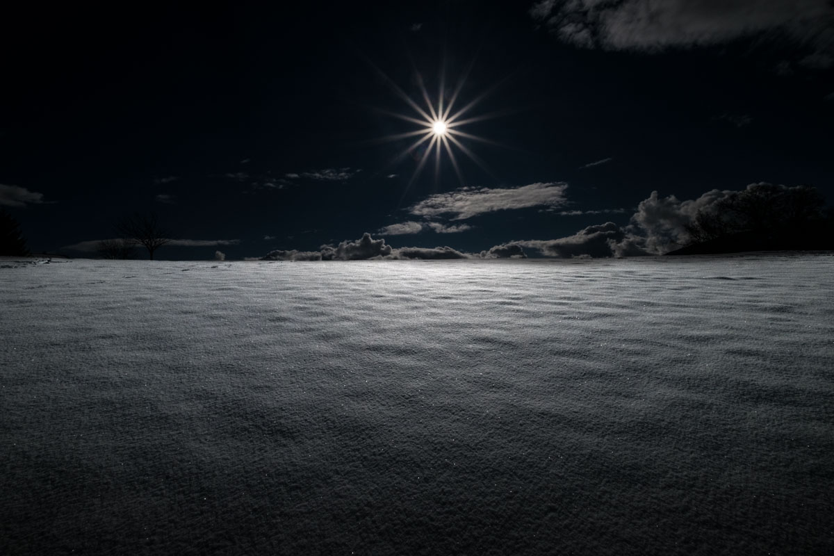 Le rendu de la neige et ce bleuté propre à la nuit. La grosse trace à gauche