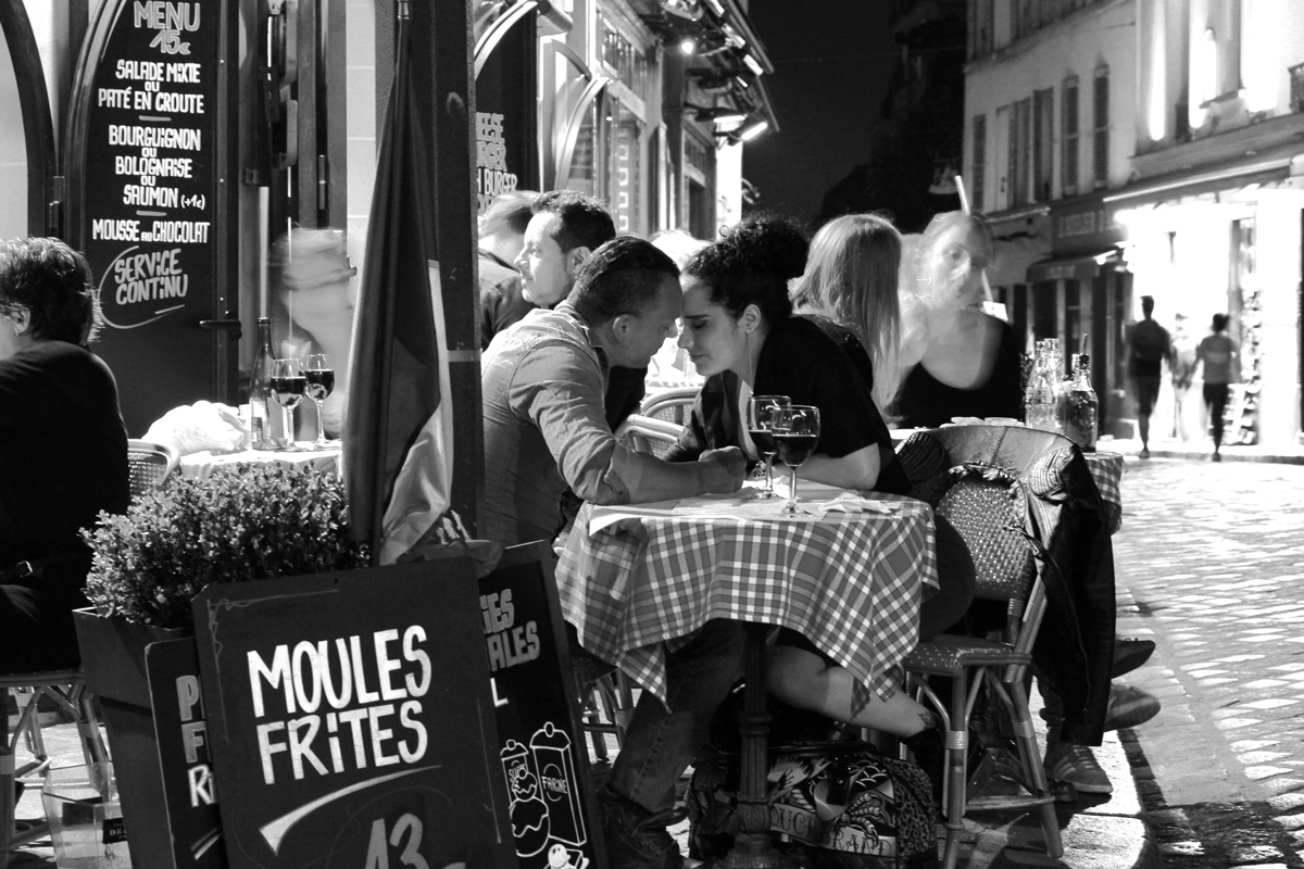 eux sont figés, les personnes la table du fond bougent. Du coup, l'instant, langoureux, est encore plus long. Excellent.