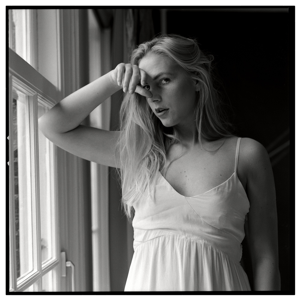 Belle lumière, beau noir et blanc. Par contre la pose du modèle est étrange, on dirait qu'elle a été surpris alors qu'elle rêvassait.