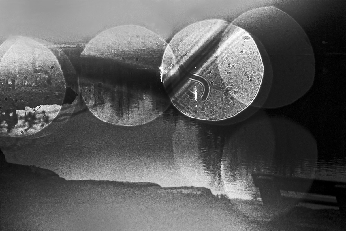 Cette photo fait partie d'une série de prises nocturnes.Ici travail sur des lumières au-dessus d'un étang, en surimpression à la prise bien sûr.