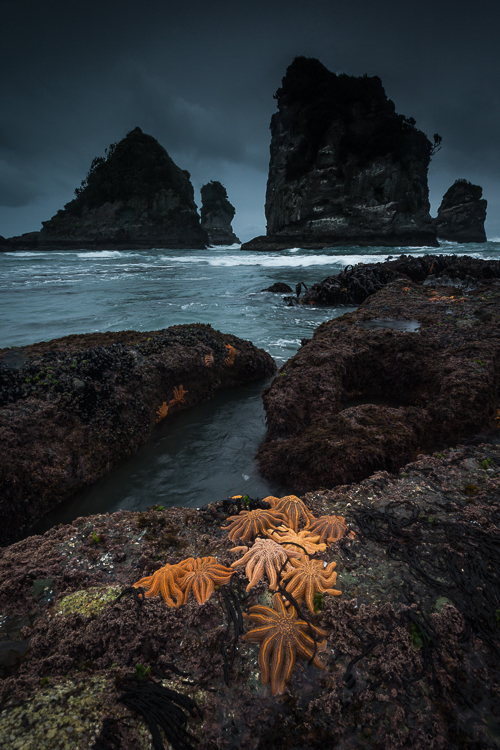 Manque un petit filet pour mieux mettre en valeur ton cadrage sur le fond de CP ....Perso je me demande si une recherche sur une diagonal ???? ici c'est assez linéaire sur une ligne verticale placée au centre qui pare des étoiles de mer passent entre les rochers qui sont aux milieu et fini entre les petit et le gros rocher de droite au fond ..... c'est ma lecture d'autres trouverons surement une autre chemin ,