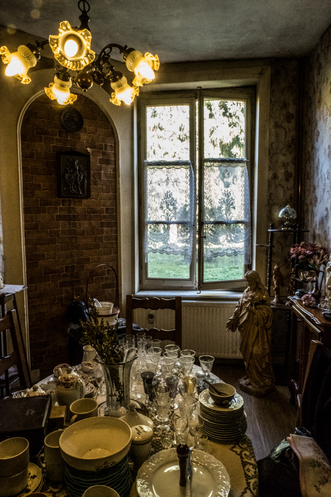 moi aussi, ça sent la cire, un peu le renfermé, ce fatras de vaisselle ancienne, on pourrait trouver ça chez un curé. le bruit oui mais ça fait époque, le lustre un peu trop lumineux par rapport aux tons feutrés du reste mais une belle prise