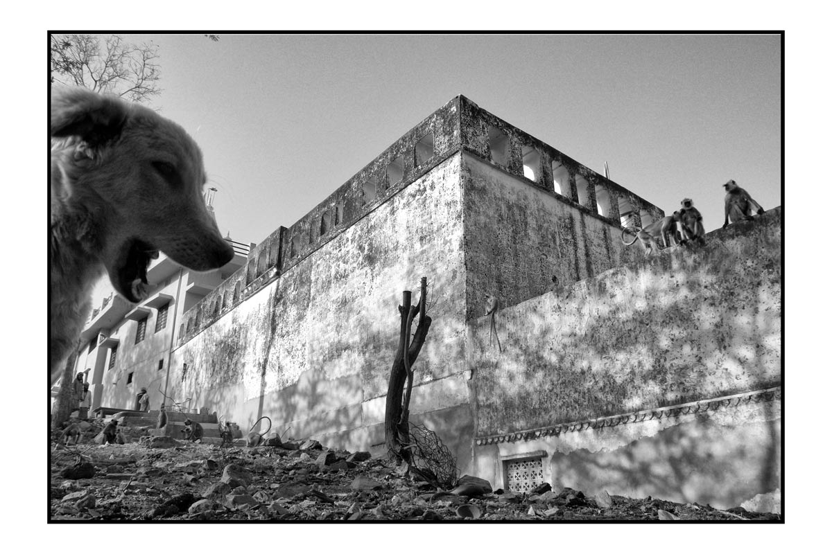 En Inde les animaux sont partout...notamment les chiens et les singes...qui cohabitent plus ou moins bien
