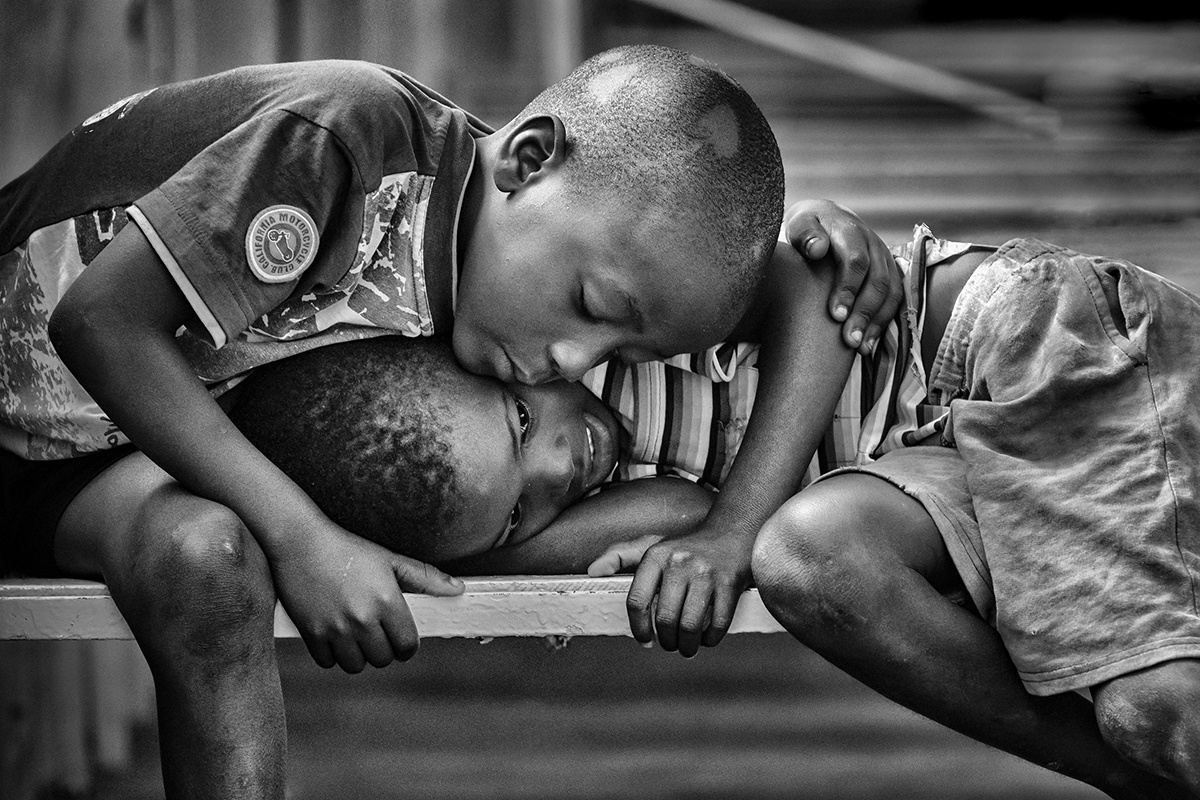 Les enfants qui attende leur repas de la journée, peut être bien la seule.