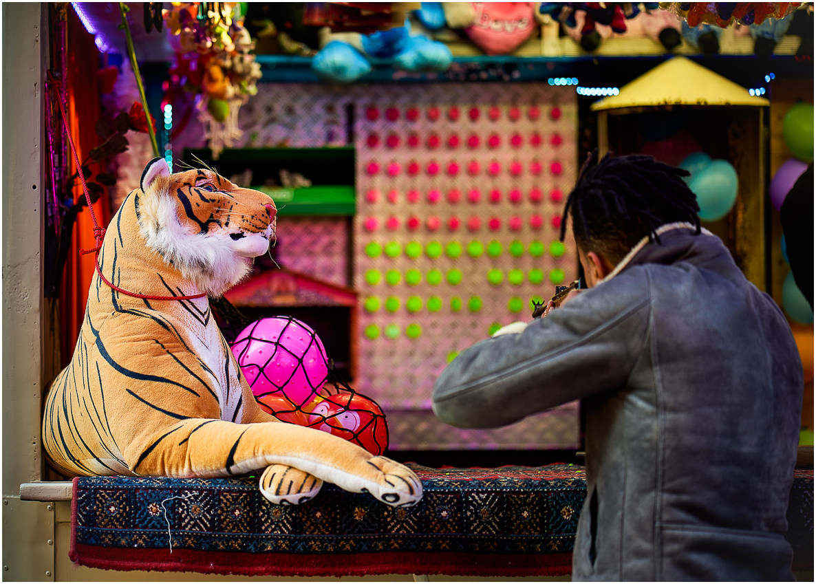 La tof coloré de fête foraine est bien prise, au bon moment.