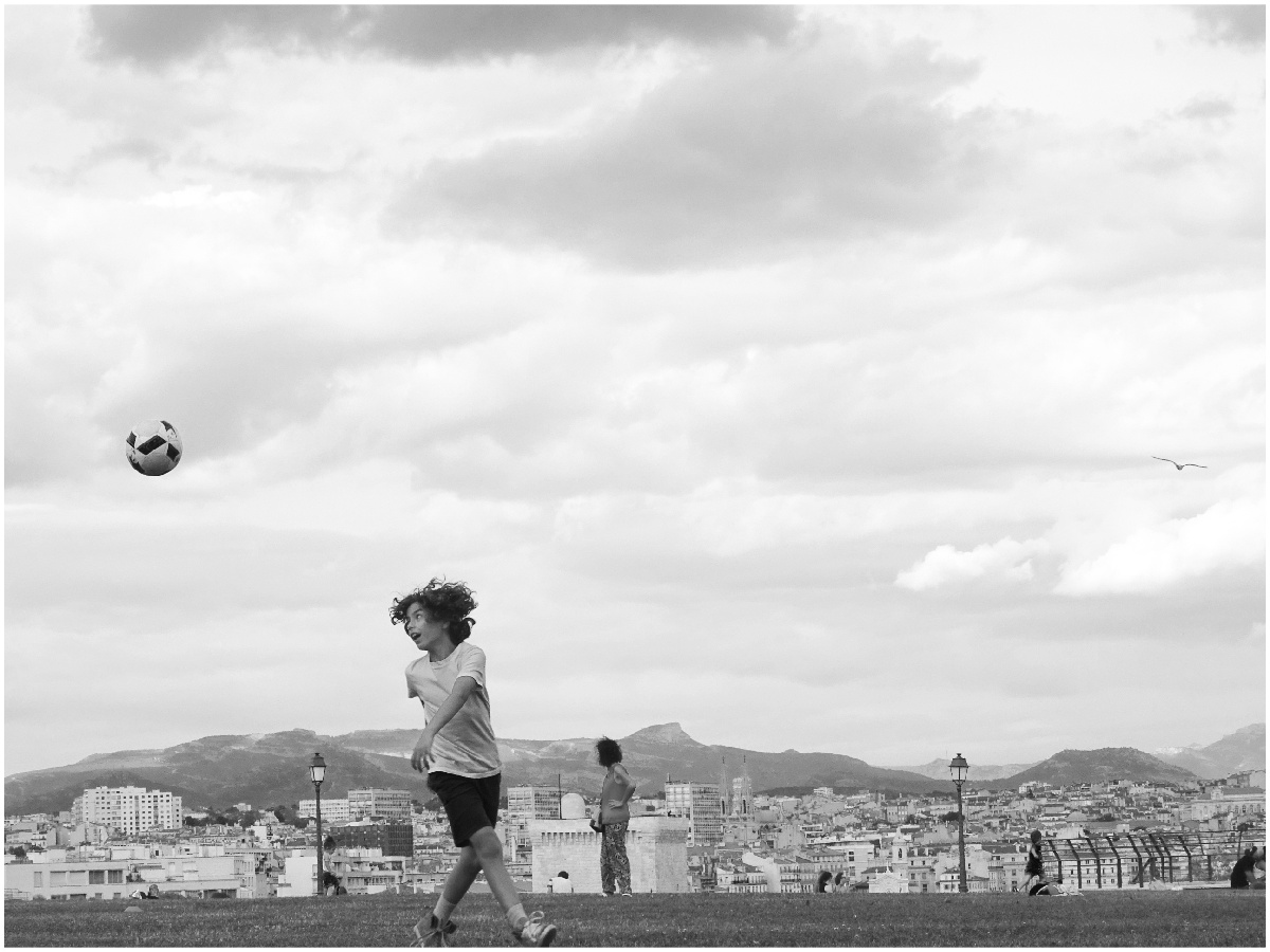 Cet enfant semble heureux car il s'apprête à réaliser une magnifique reprise de volée du gauche