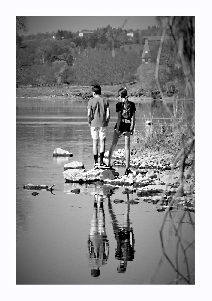 Je comprends que le format ait été choisi pour faire entrer le reflet mais les enfants sont trop centrés, pour moi, et un peu serrés. N'aurais-tu pas un format horizontal pour voir ?