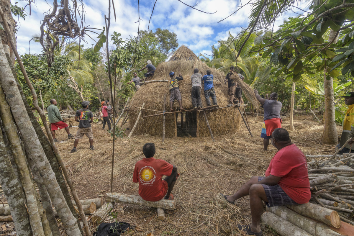 La pose des fondements traditionnels de l'habitat autochtone dans une certaine région du monde.