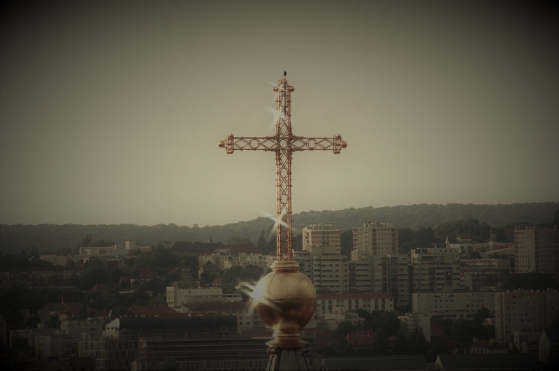 Le fond est trop voyant, il aurait fallu une ouverture plus grande pour flouter les bâtiments et donner l'importance au sujet principal. La Map n'est malheureusement pas faite sur la croix et le vignetage voudrait attirer le regard sur celle-ci, mais...