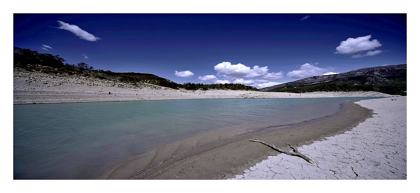 Une terre craquelée, une branche morte, une eau en recul, un appel au secours de la nature.