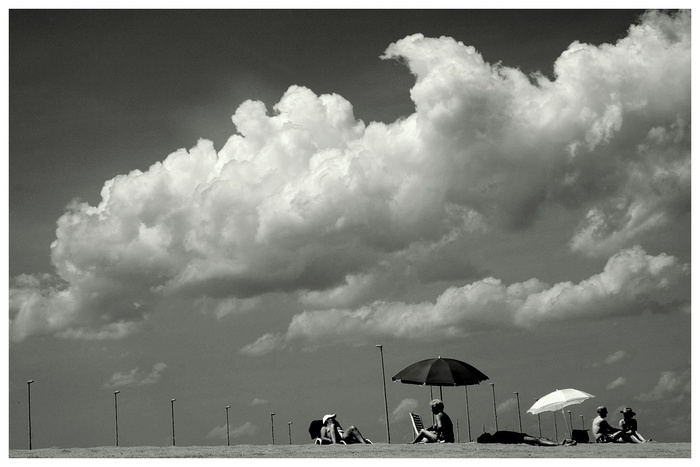 j'aime beaucoup cette PDV....Très bien cadrée.....juste ce qu'il faut comme monde pour animer le cliché et j'aime ces 2 lignes de fuite .....entre les nuages qui nous emmènent vers la gauche de la photo et les poteaux qui eux nous dirrigent vers le fond à droite...bravo...moment bien capté!