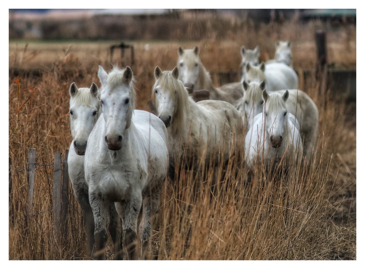 Les teintes sont belles et j'aime beaucoup l'idée de ce groupe de chevaux émergeant des herbes hautes.