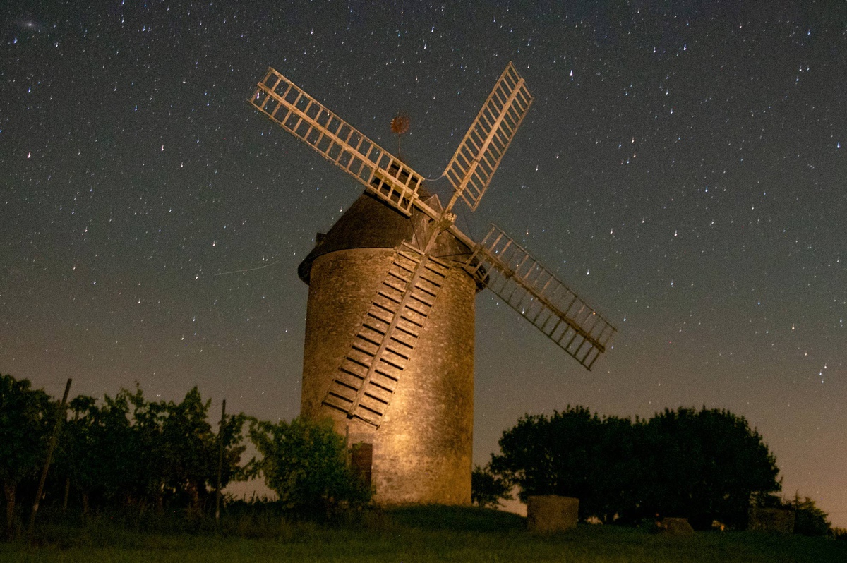 Pourquoi pas une image verticale avec plus de ciel et encore plus d'étoiles scintillantes et d'invitation au voyage spatial au-dessus du moulin qui pendrait des airs de fusée sur le départ...