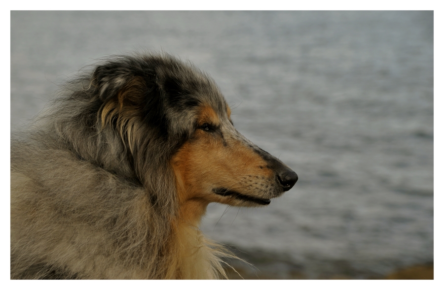 Dommage ! Ce beau chien devant cet arrière-plan uni méritaient mieux...