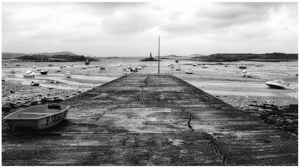 Compo équilibrée , la rampe nous projette vers un horizon que la basse mer rend inaccessible