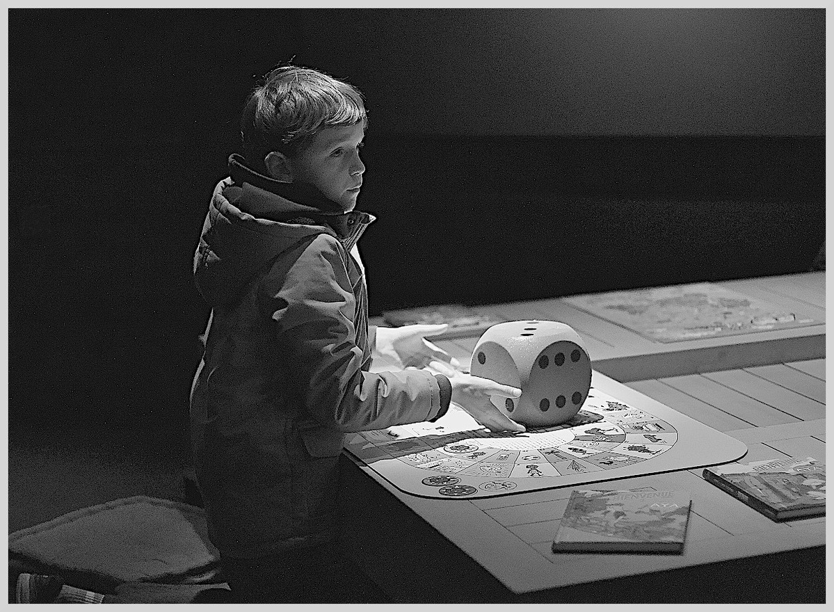 Presque encombrant ce dé que l'on lance à deux mains. Seul sur ce jeu de l'oie, le regard un peu perdu, tu as magnifié ce petit dans cette lumière incroyable. Bravo 👏👏👏