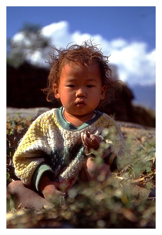 J'aime bien ce portrait d'enfant composé entre deux jolis flous d'avant plan et d'arrière-plan.