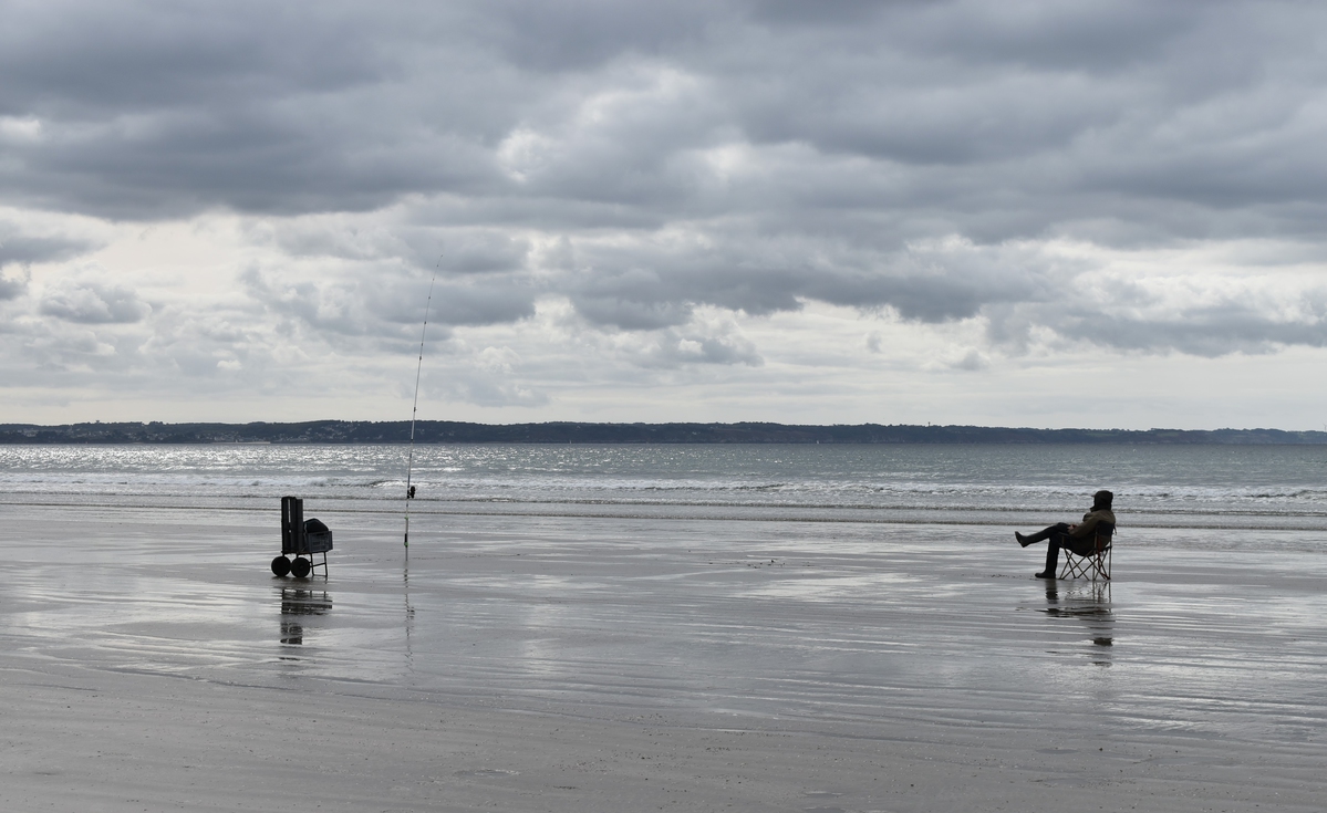 Le pêcheur qui attend et qui attend... Je modifierai le cadrage en pano pour dynamiser la scène en éclaircissant le matériel et lui-même. + assombrir le ciel