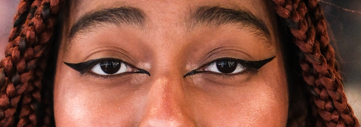 Un portrait linéaire plutôt original; nous suivons la ligne des sourcils joliment arquée et le dessin des yeux qui ondulent comme des vagues.