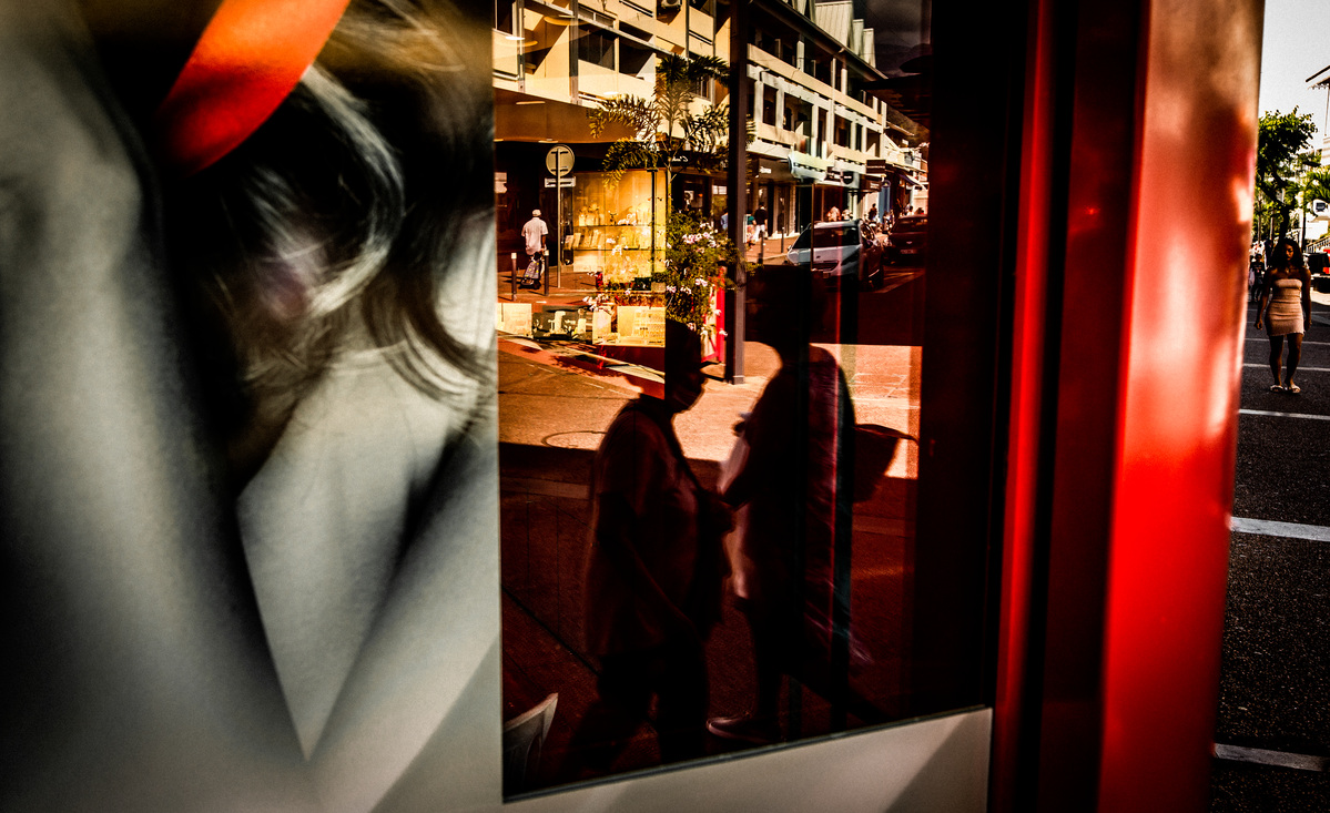 Un petit tour à la ville et un oeil affûté pour ce double triptyque habité et coloré. Poster, reflet et réalité de la rue. C'est très bien vu