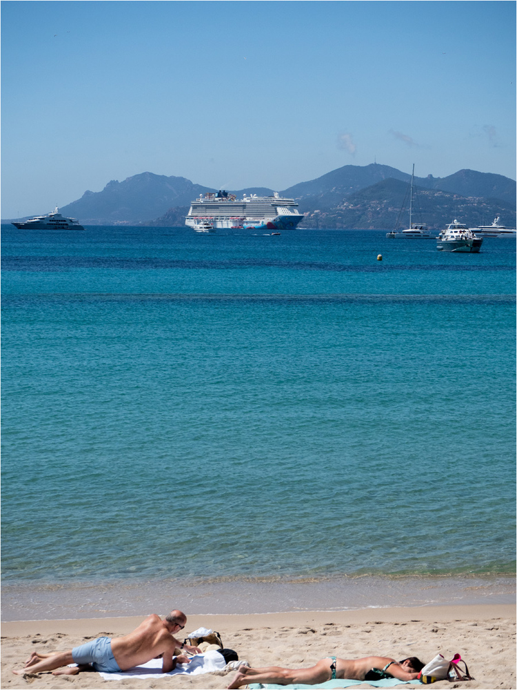 J'aime bien cet étagement bleu, paysage idéal, gâché par la présence de ce navire de tourisme.