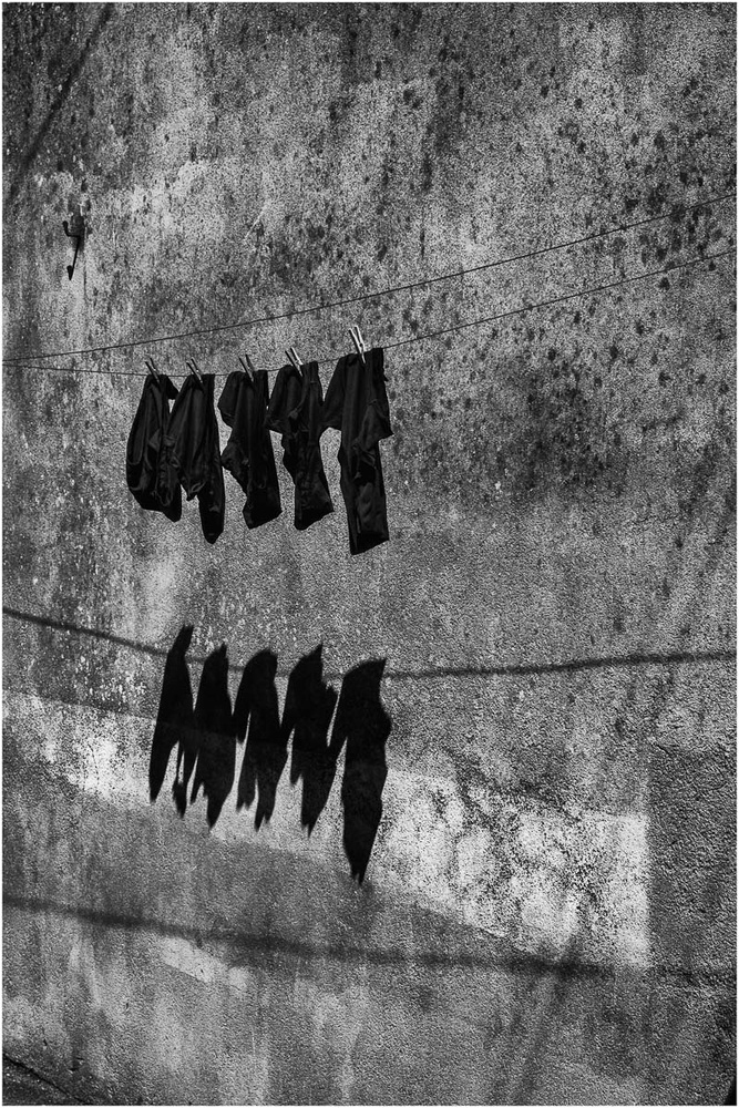 Un attentat et sa réplique, j'y vois des cagoules beau NB avec ce jeu d'ombres et de lignes