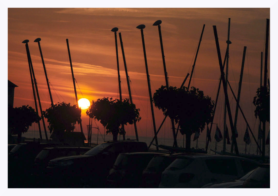 Un graphisme intéressant avec ces mâts qui s'imprime dans le soleil couchant.