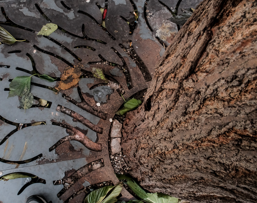 Un graphisme comme des racines et un point de vue qui nous fait entrer dans le monde des arbres.