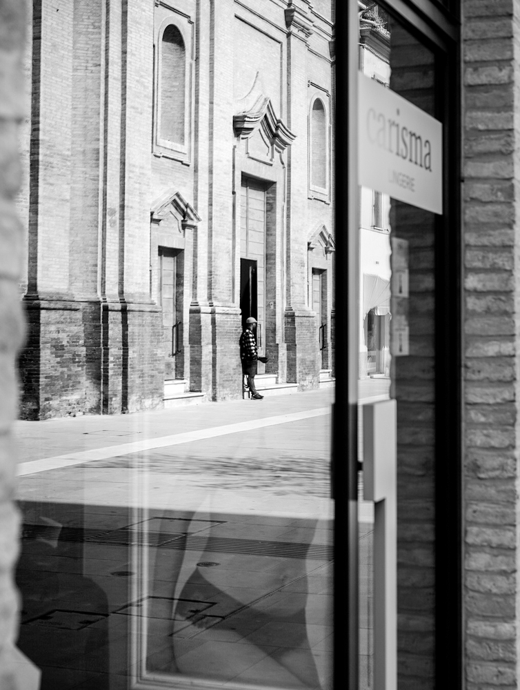 Je me suis appliqué à faire coïncider certaines lignes verticales du magasin de lingerie avec celle de la façade de l’église