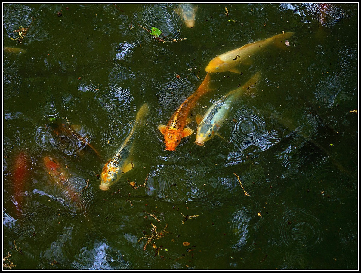 Ah ces carpes koï... un très beau tableau, colorimétrie impeccable et un mouvement induit. Une nature vivante. Une réussite!