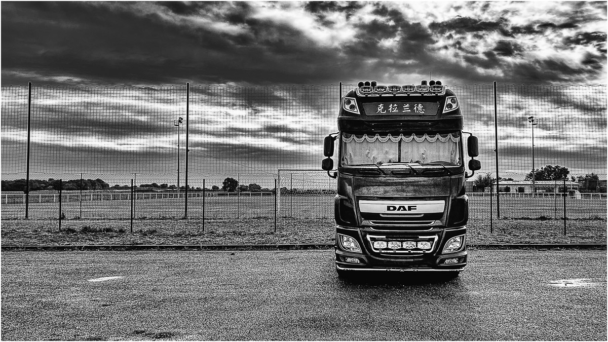 un beau camion, très beau nb , j'aime bien aussi le ciel ,