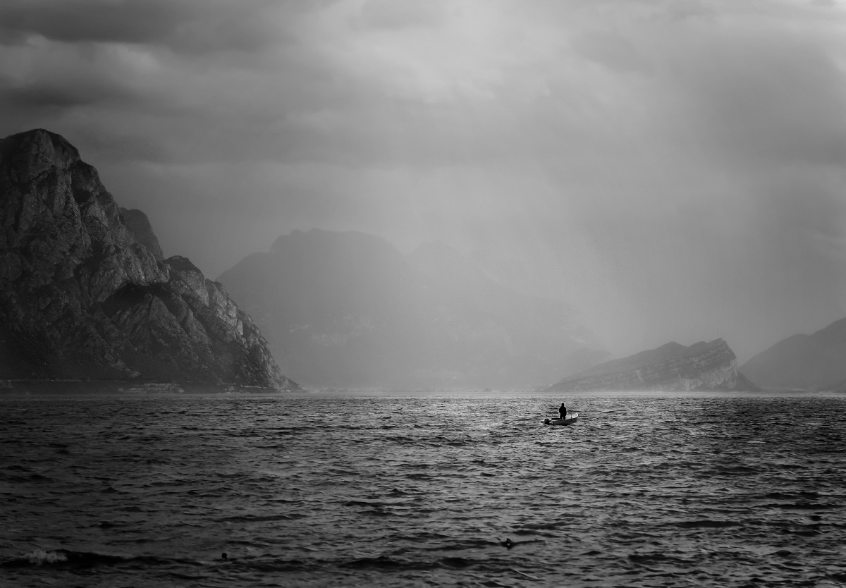 La petitesse de l'être humain face aux éléments, ce cliché puissant est une magnifique leçon d'humilité que les : cadrage, lumière et traitement magnifient.