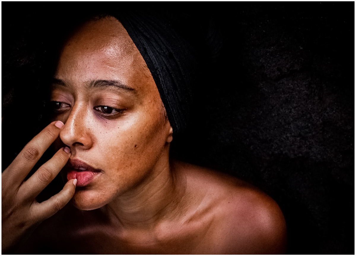 Comme l'a très bien dit Btey, le fond noir donne toute sa place au visage de cette femme. Le regard est perçant. La main est-elle celle qui caresse ou celle qui meurtrit ?...