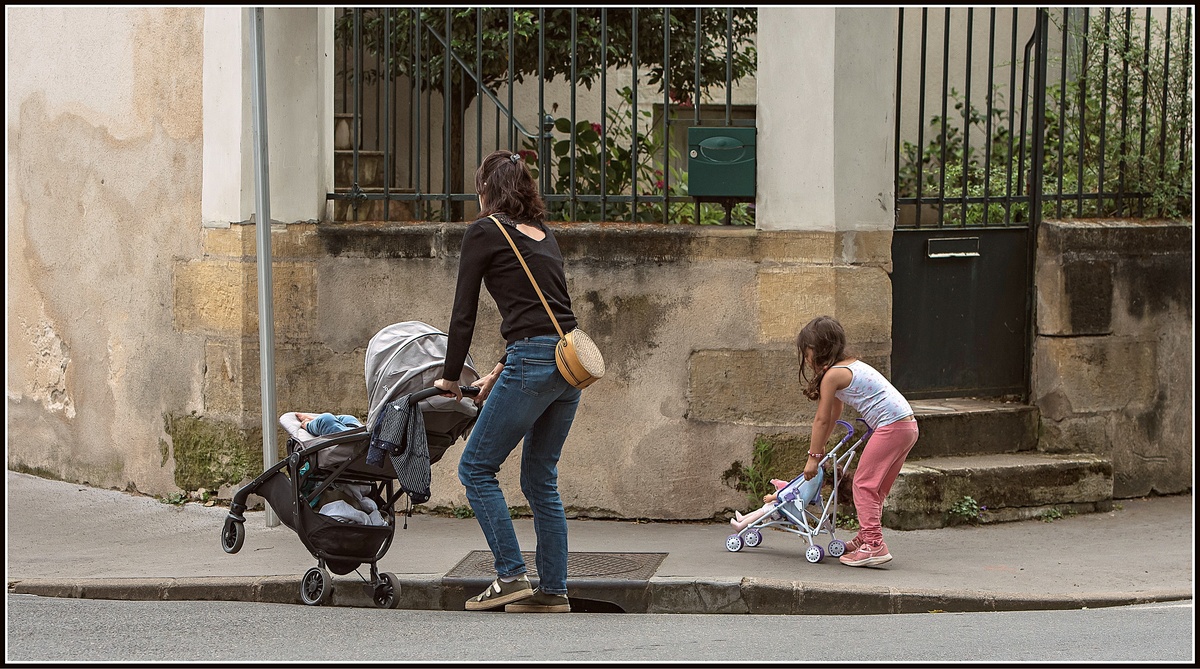Plus que du mimétisme, il s'agit d'une illustration du conditionnement idéologique ordinaire, si ordinaire que l'idée même du conditionnement des femmes disparaît derrière la "gentillesse" d'une scène perçue comme amusante, plaisante.